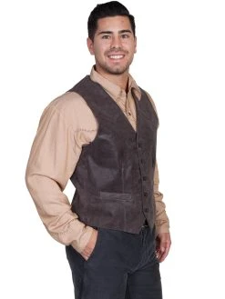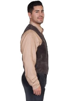 Scully Leather Mens Western Lambskin Button Front Vest Brown