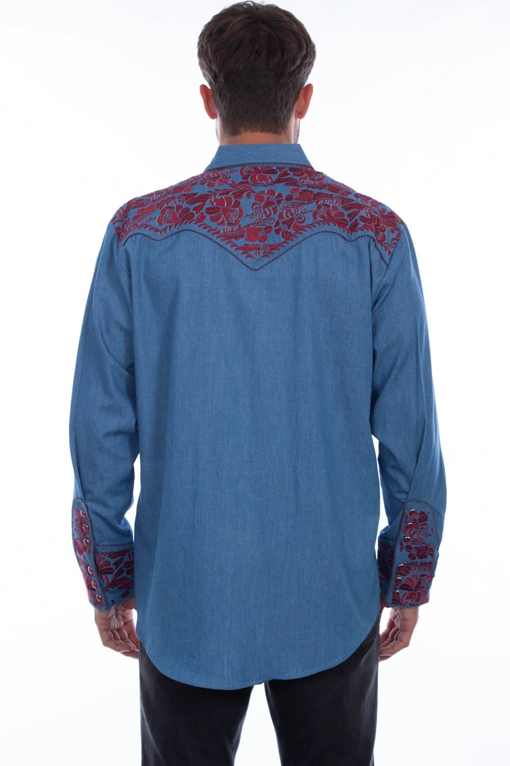 Scully Mens Blue/Cranberry Polyester Tooled Floral L/S Shirt
