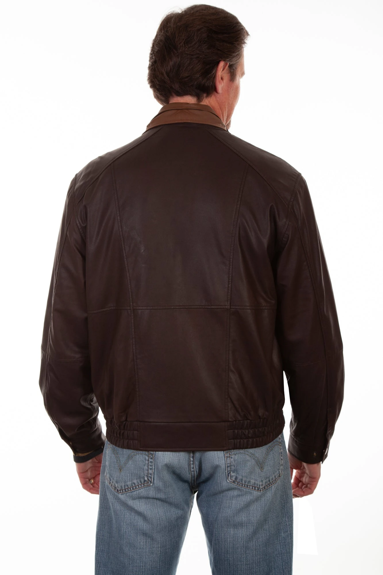 Scully Mens Chocolate/Cognac Leather Dbl Collar Jacket