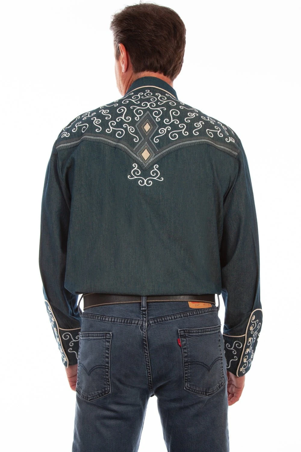 Scully Mens Denim 100% Cotton Diamond Snap L/S Shirt