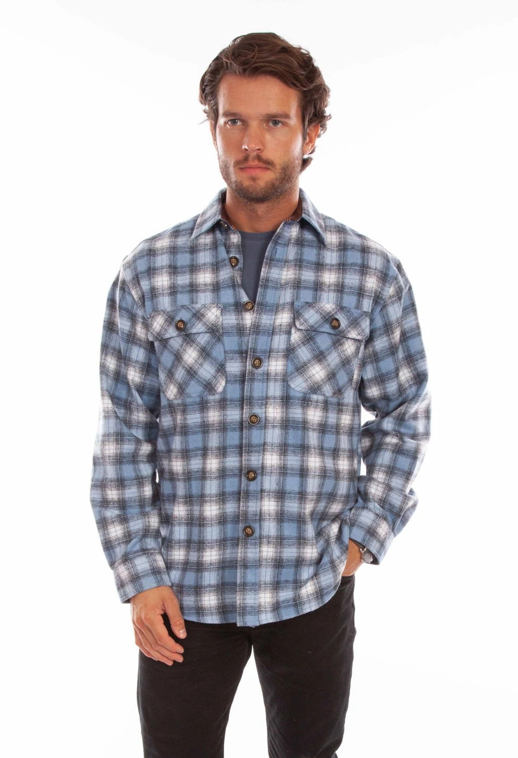 Scully Mens Slate Blue/Black Wool Blend Plaid L/S Shirt