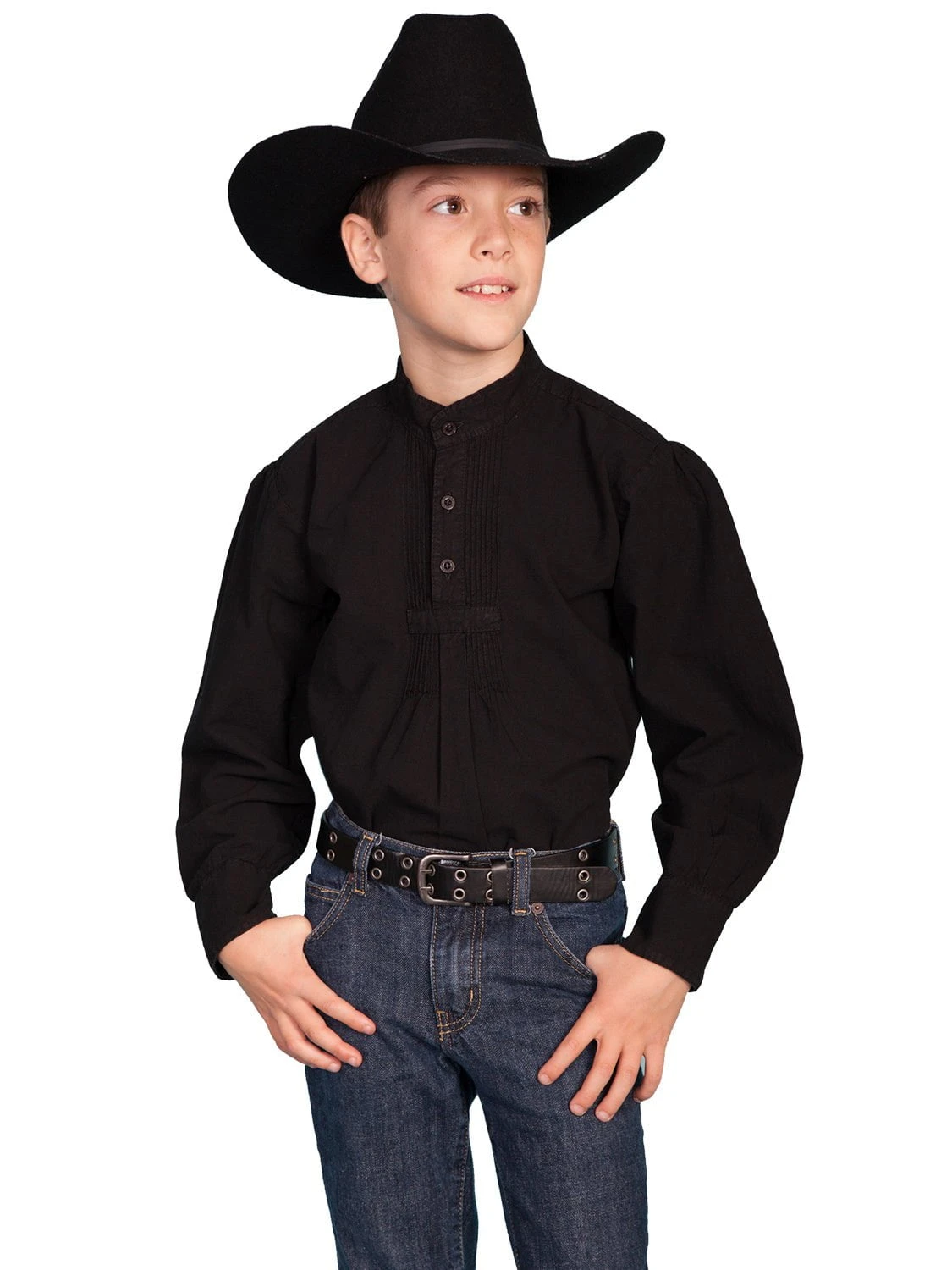Scully Rangewear Boys Black 100% Cotton L/S Pullover Pleated Front Shirt
