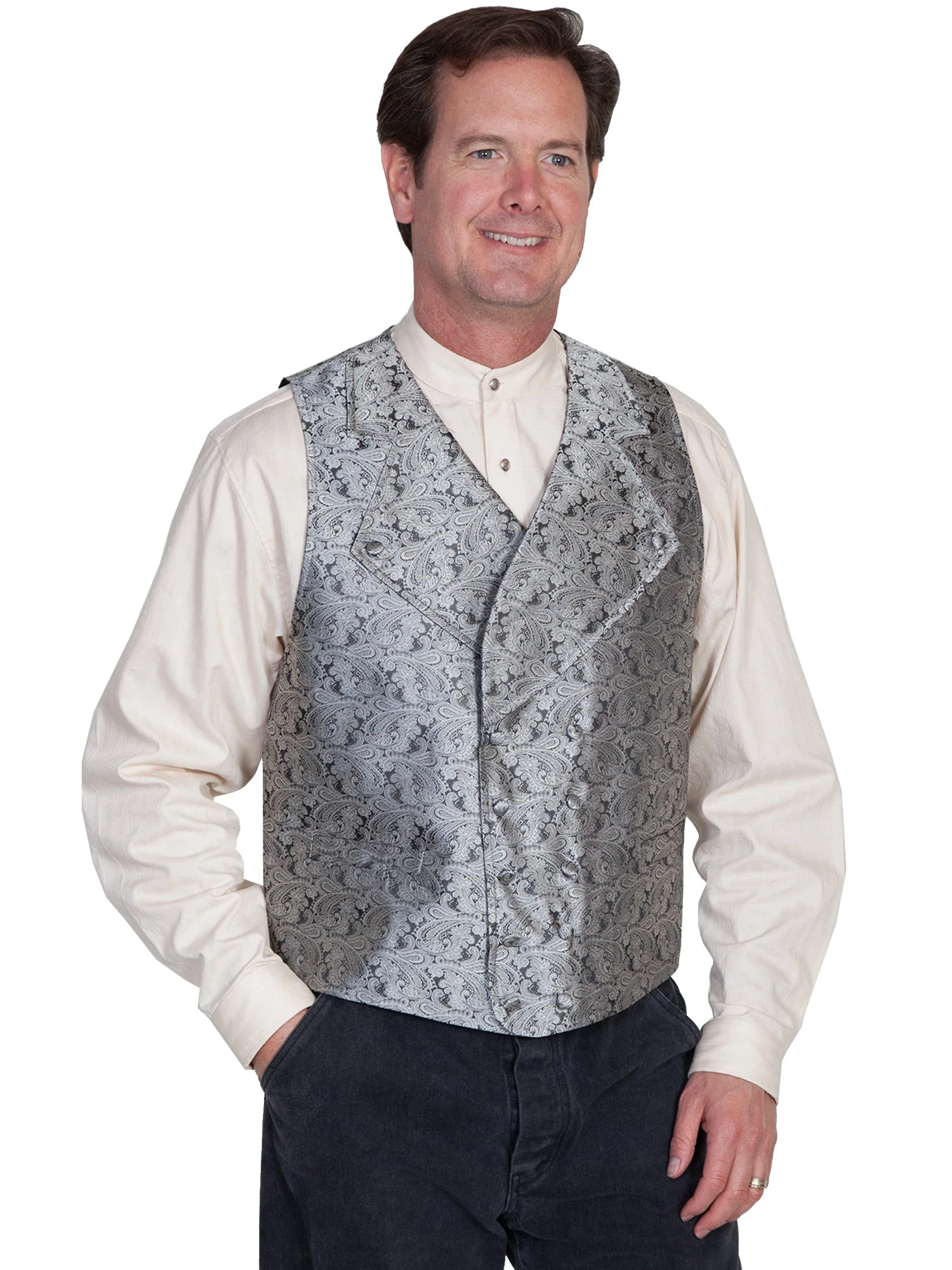 Scully Rangewear Mens Grey Polyester Paisley Scroll Double Breasted Vest