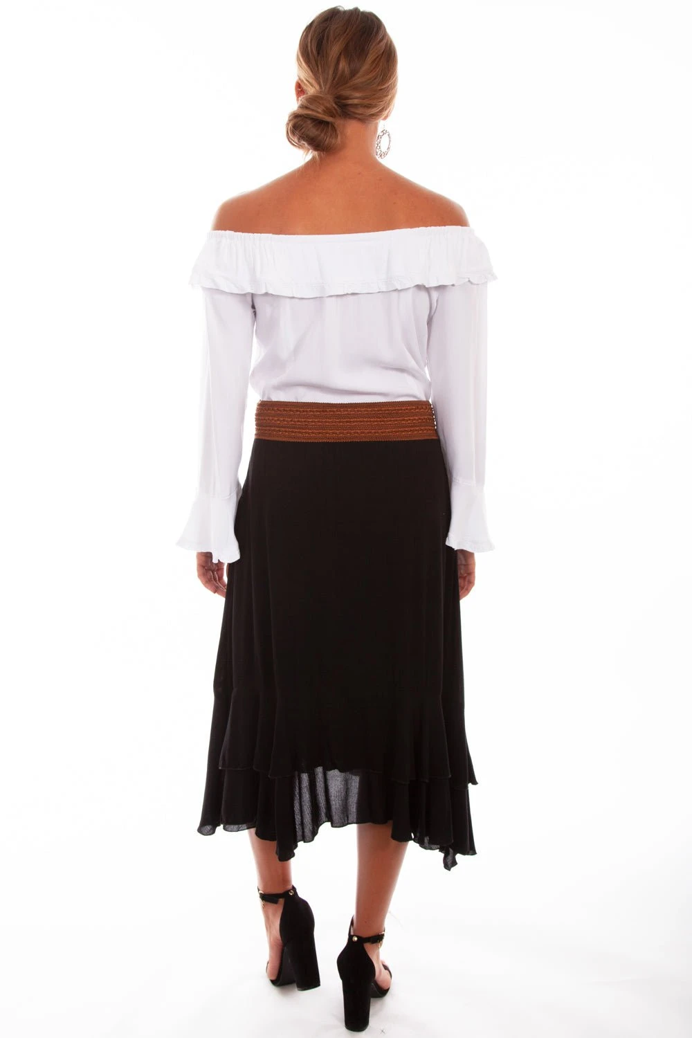 Scully Womens Black 100% Rayon Maxi Ruffle Skirt