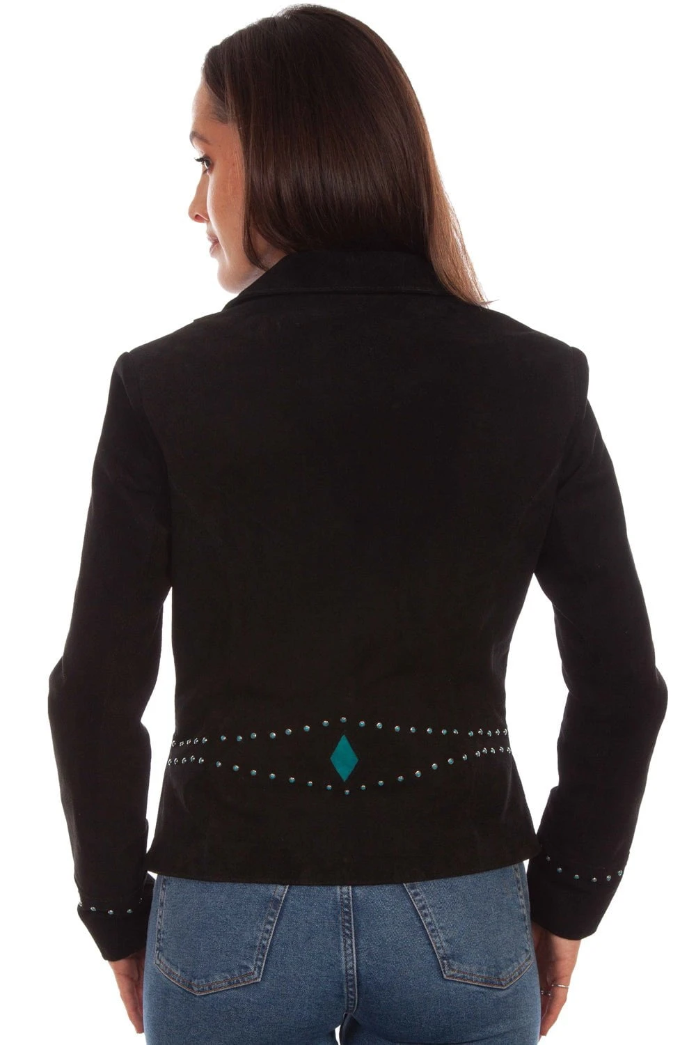 Scully Womens Black Boar Suede Leather Studded Lapel Jacket