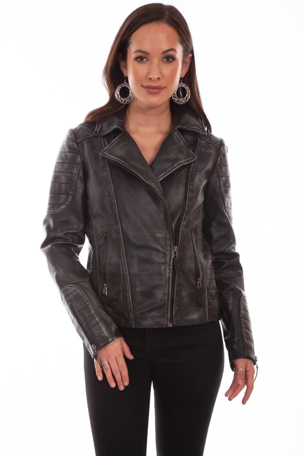 Scully Womens Black Leather Motorcycle Quilted Jacket