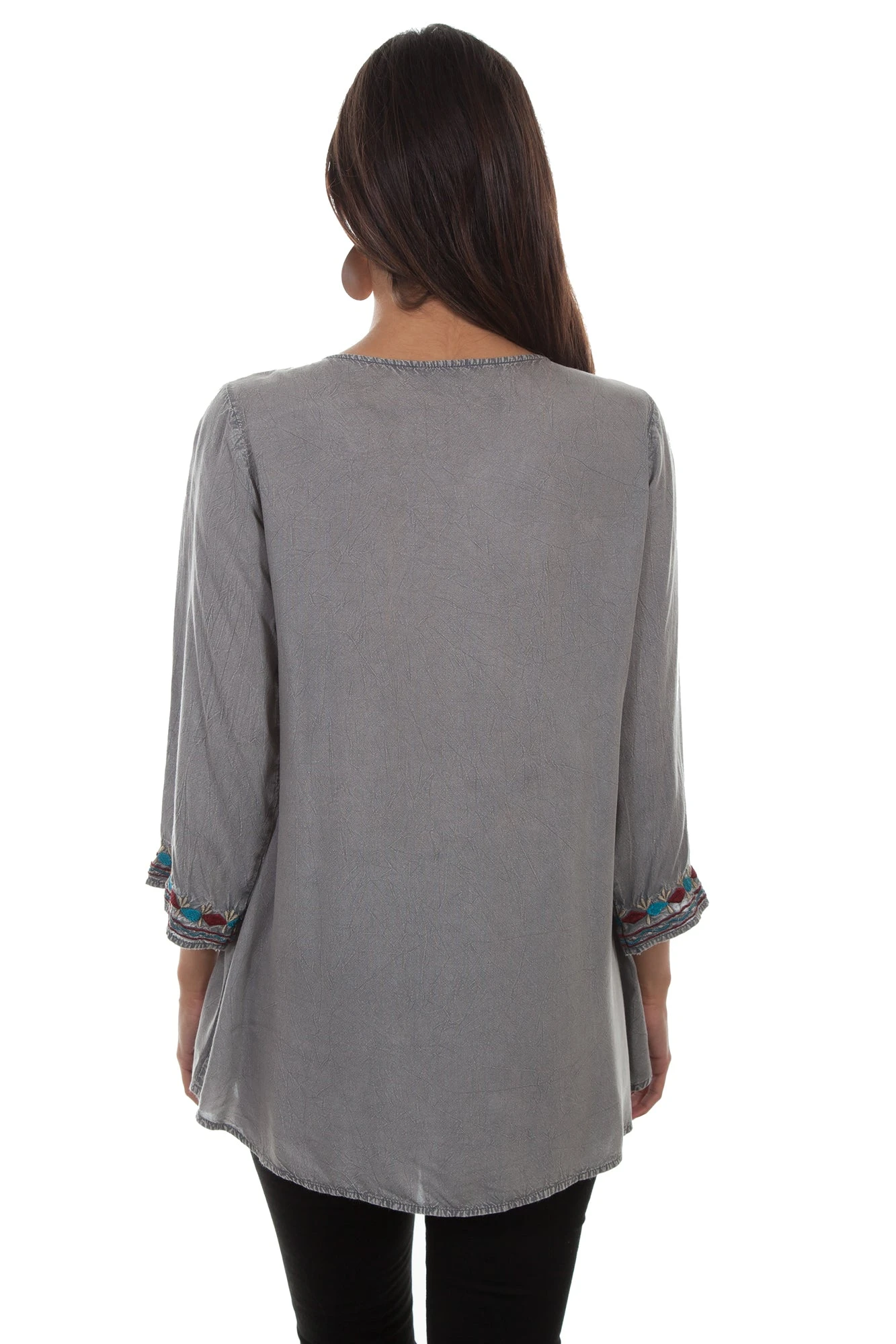 For the best leather accessories, look no further than Scully Leather. These high quality leather goods are crafted from the finest leather available. This item features 100% viscose, floral embroidery, and 3/4 sleeves. Enjoy Scully western style in this shirt.