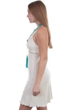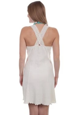 Scully Womens Natural 100% Cotton Crochet Strap S/L Dress