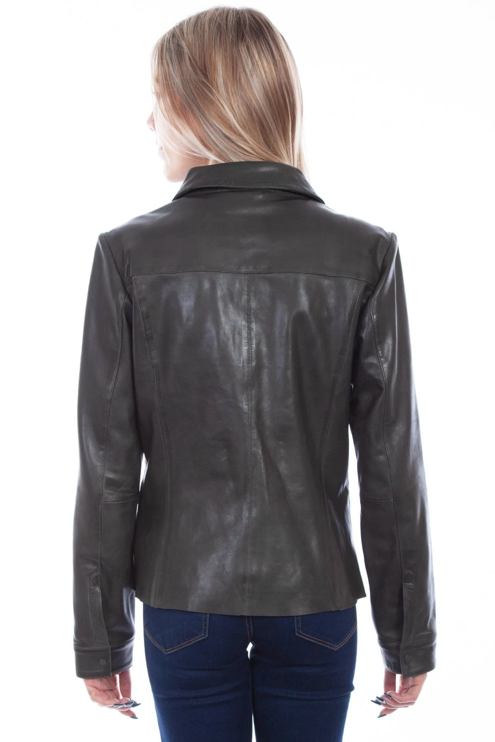 Scully Womens Olive Leather Contemporary Snap Jacket
